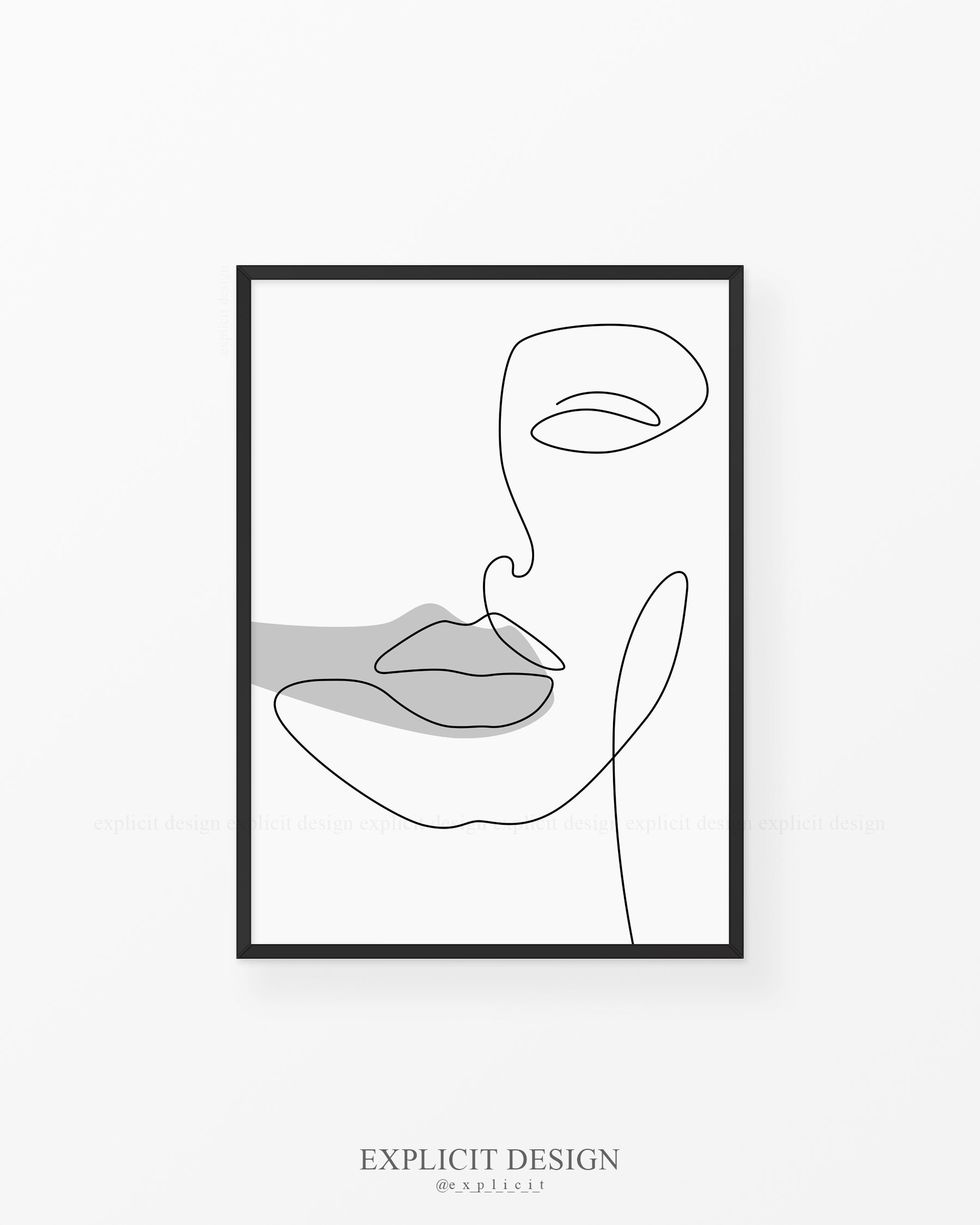 Female Face Drawing Woman In One Line Art Grey Lipstick Etsy