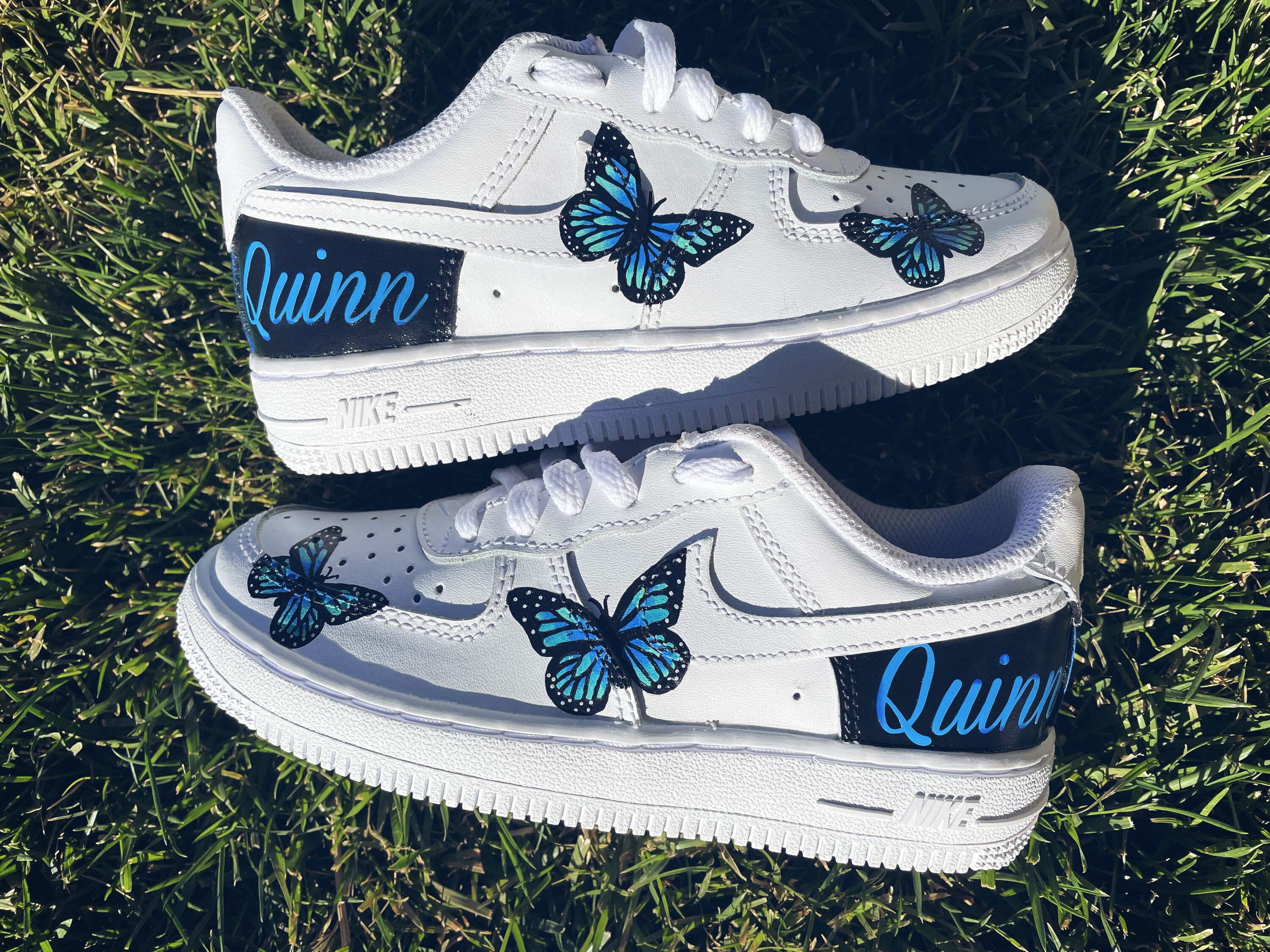 Hand Painted Custom Air Force 1 Low Blue Butterfly Af1 Etsy