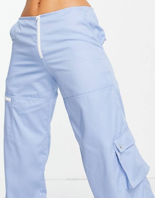 Motel Y2k Low Rise Cargo Trousers In Powder Blue Asos